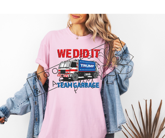 Sold outWE DID IT TEAM GARBAGE SHIRT