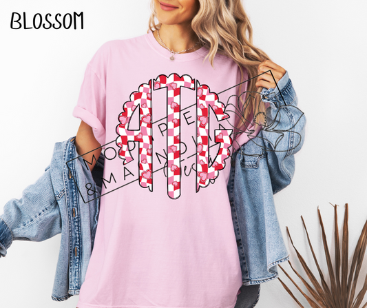 RED CHECKERED HEART MONOGRAM CC SHIRTS