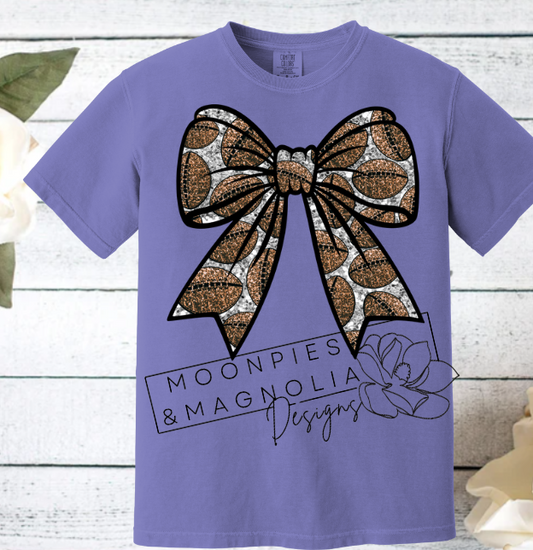SEQUIN FOOTBALL BOW COMFORT COLOR T-SHIRT